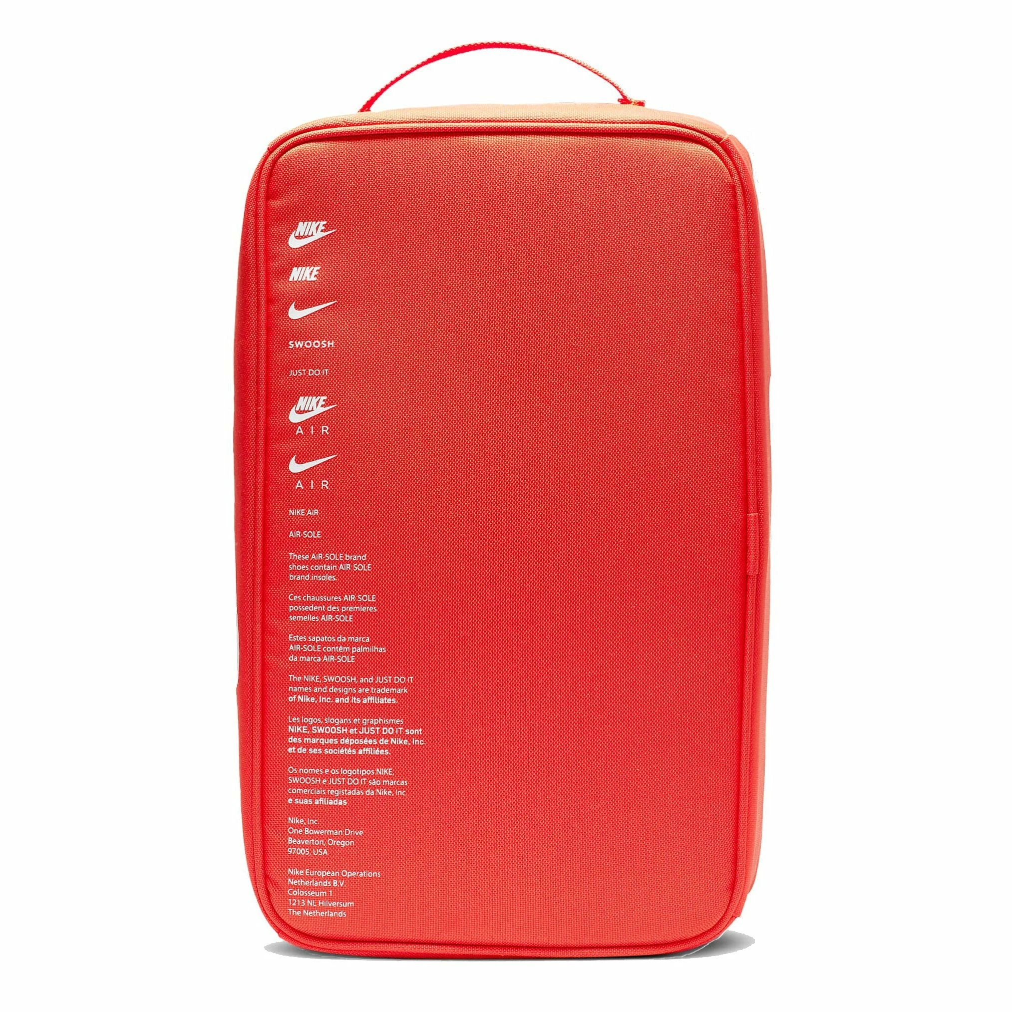Keep your shoes clean as you transport them with style & ease. The Nike Shoebox Bag features a classic shoebox silhouette with full-zip closure for fast access. An eyelet in the bag helps with ventilation. Made with at least 50% recycled polyester.