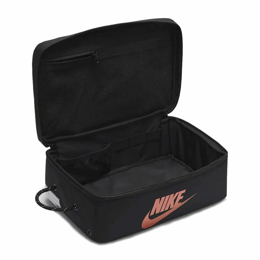 Keep your shoes clean as you transport them with style & ease. The Nike Shoebox Bag features a classic shoebox silhouette with full-zip closure for fast access. An eyelet in the bag helps with ventilation. Made with at least 50% recycled polyester.
