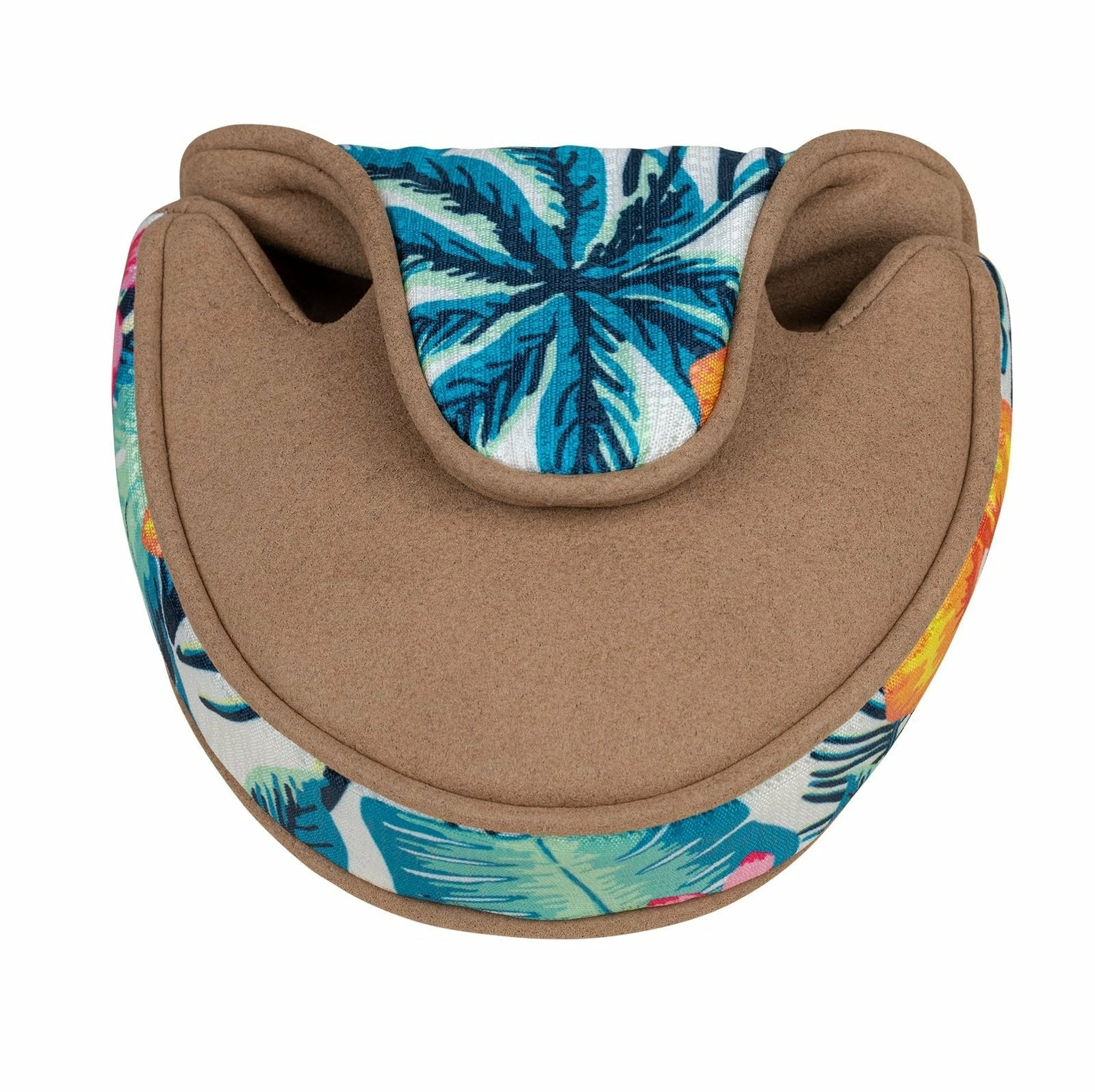 Celebrating the best that summer golf has to offer, the Ping Paradaiso Mallet Golf Putter Cover boasts an elegant tropical pattern with iconic Mr. Ping branding on a leather patch. Velour lined and easy attachment makes protecting your clubs easy with a limited edition summer style that really pops.